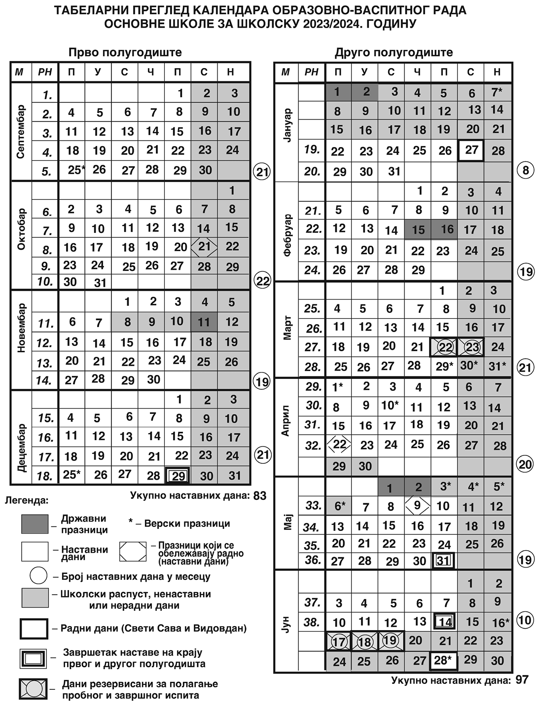 Ученици од 5. до 8 разреда ће бити у 1. смени.