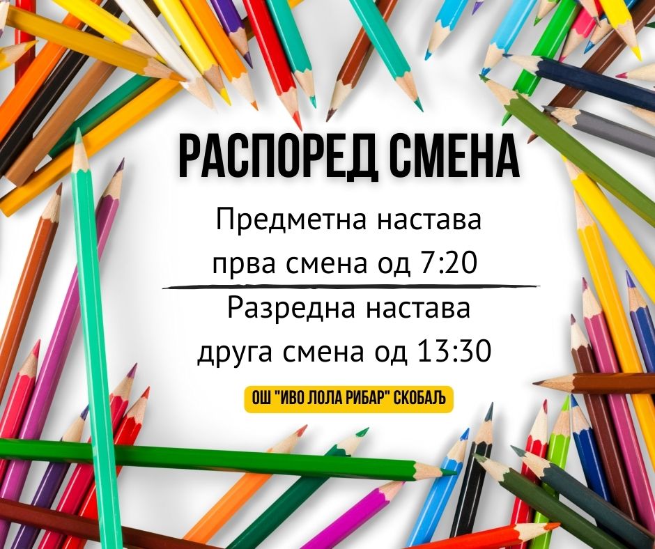 Ученици 1. и 2. разреда почињу са наставом у 13:30, а 3. и 4. у 14:20 часова.